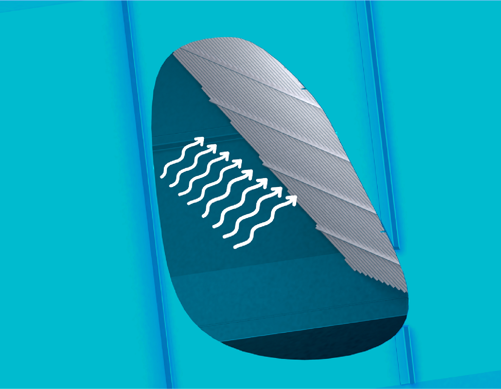 通過一級脫水室后,空氣中的液體含量大部分已經被去除,少量的液體隨空氣進入到設有特殊設計的折流板二級脫水室。二級脫水室折流板采用流線型多波設計,具有脫水效率高,阻力小,結構堅固耐用等特點。并且二級脫水室風道截面積巨大,空氣在此的流動速度可以降至2米/秒,以保證折流板發揮很大的脫水效率。經過三層弧形擋板和折流板脫水后的空氣即可通過煙囪排放。